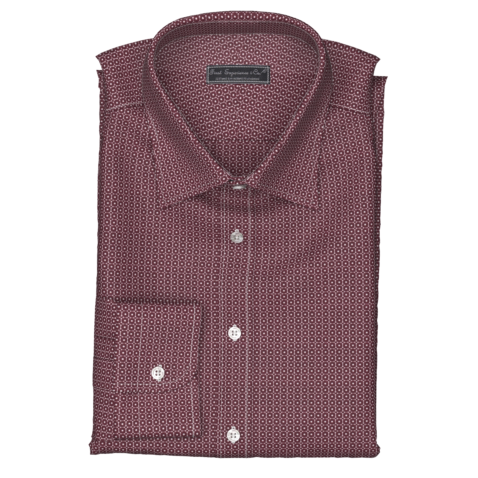 しっかりとした打ち込み本数のブロード120gmsにバーガンディ・スクエア調のプリントをした上質生地です。