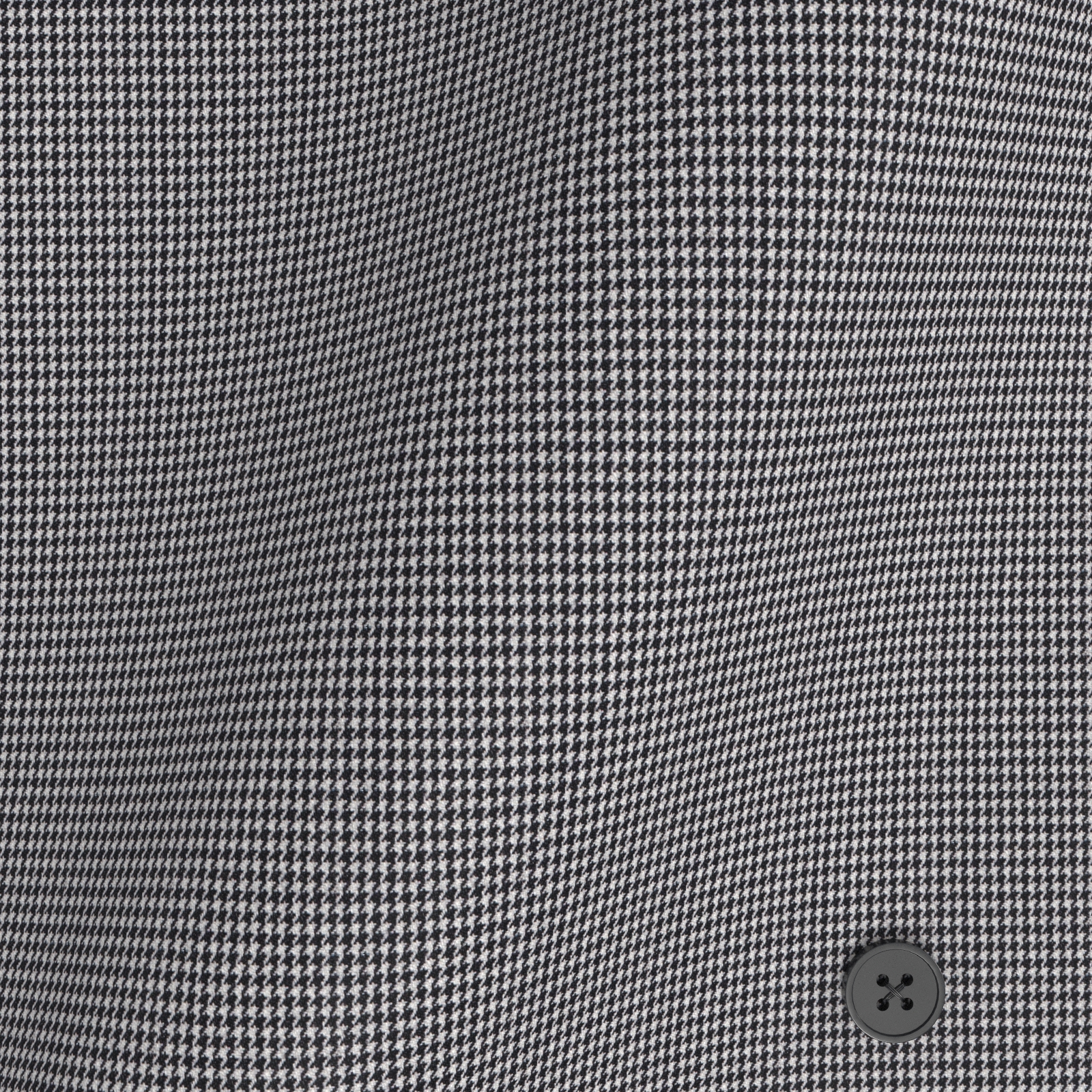 イージーケア性に優れ、高感度で機能性の高いLANATECのブラック千鳥格子生地です。ウールライク・ファブリックで軽いストレッチがビジネスシーンのストレスを軽減する素材です。