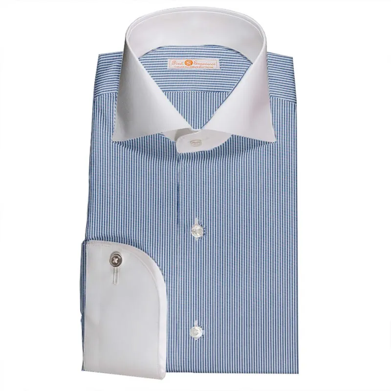 詳細GIZA88の超長綿を使用した120双糸ガス焼きの上質なネイビーのストライプ生地です。
