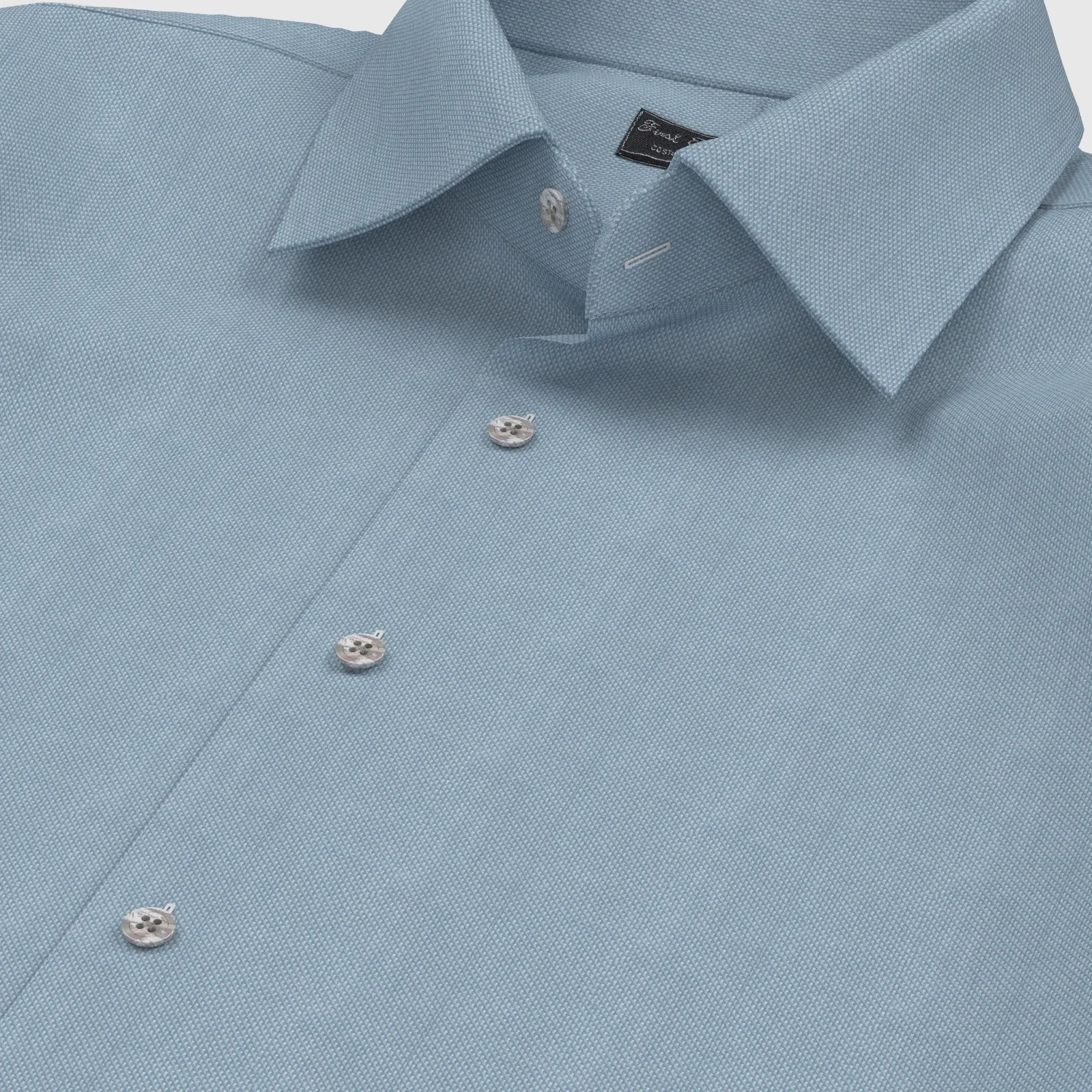 詳細上質な国産の形態安定TC(綿×ポリエステル)素材のブルー・ロイヤルオックスフォード生地となります。