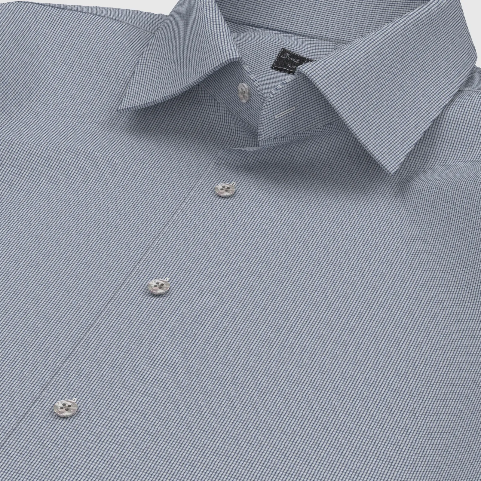 詳細上質な国産の形態安定TC(綿×ポリエステル)素材のネイビーのマイクロチェック生地となります。