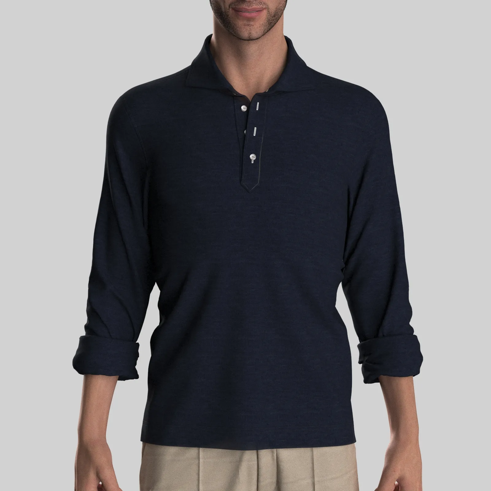 詳細オールシーズンに対応するベーシックな薄手のベア天竺のネイビー素材となります。しなやかな伸縮性があり、ソフトな肌ざわりがジョンスメドレー的な夏素材の雰囲気です。