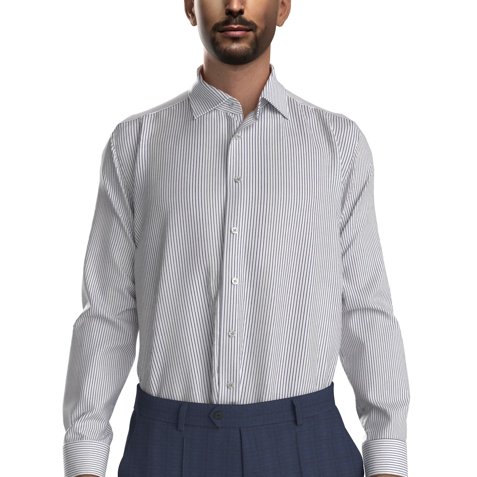詳細GIZA88の超長綿を使用した100双糸ガス焼きの上質なネイビーのストライプ生地です。