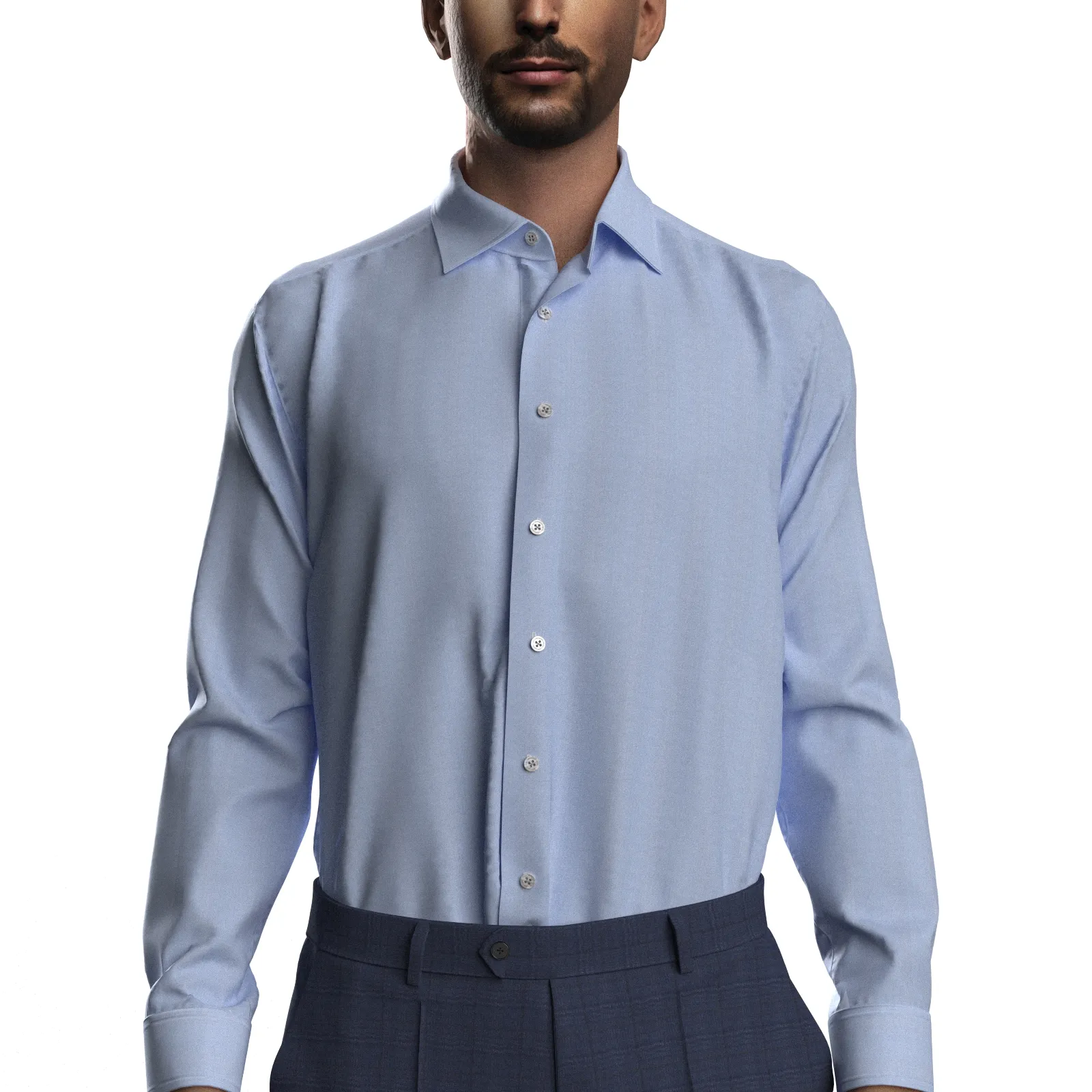 詳細GIZA88の超長綿を使用した100双糸ガス焼きの上質な淡いサックスのシャンブレー生地です。