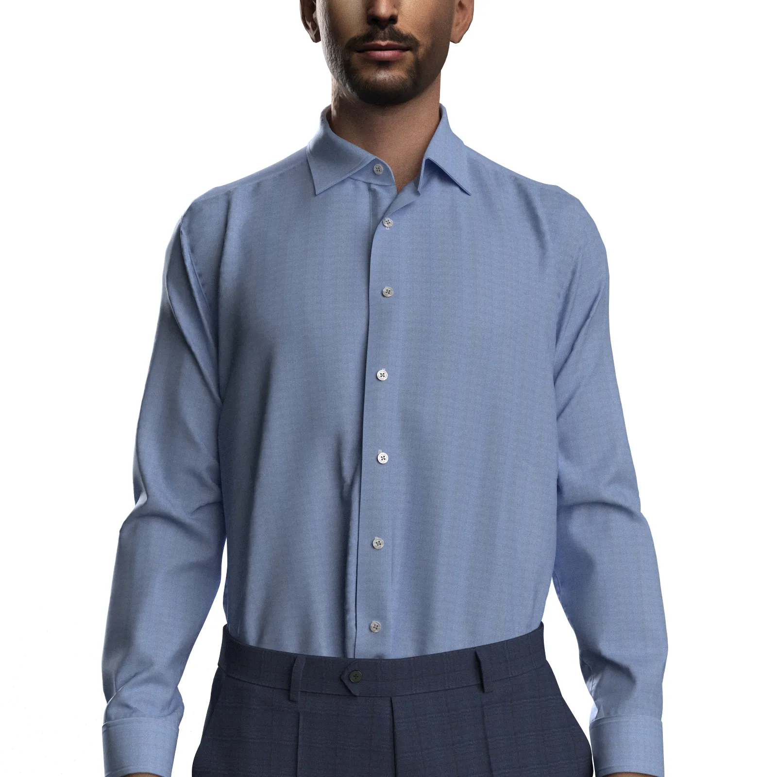 詳細GIZA88の超長綿を使用した100双糸ガス焼きの上質な淡いブルーのシャンブレー生地です。