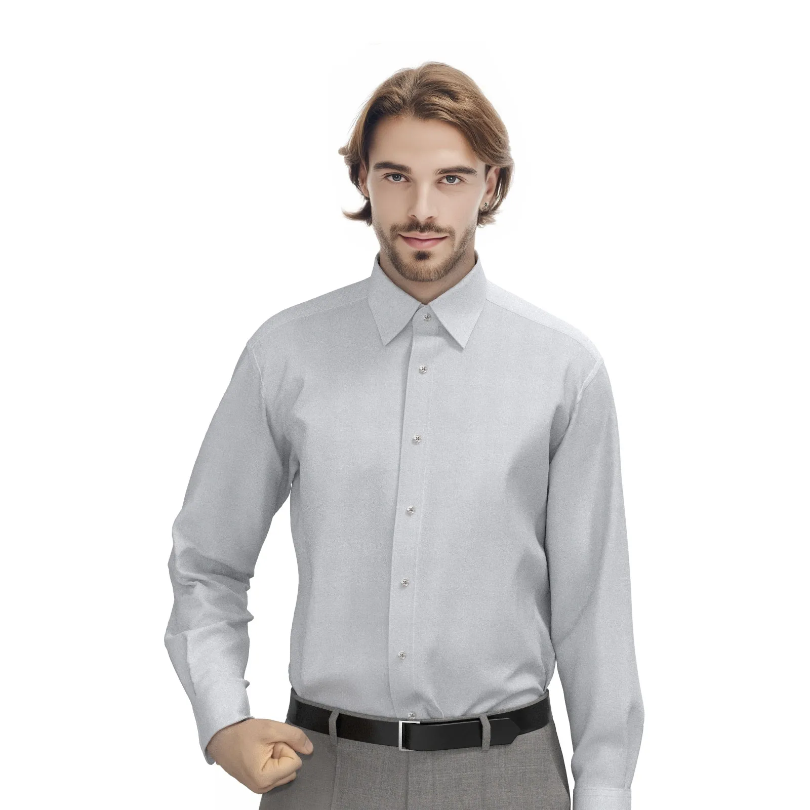 WRINKLE FREE TC ライトグレー シャンブレー (Y100937)