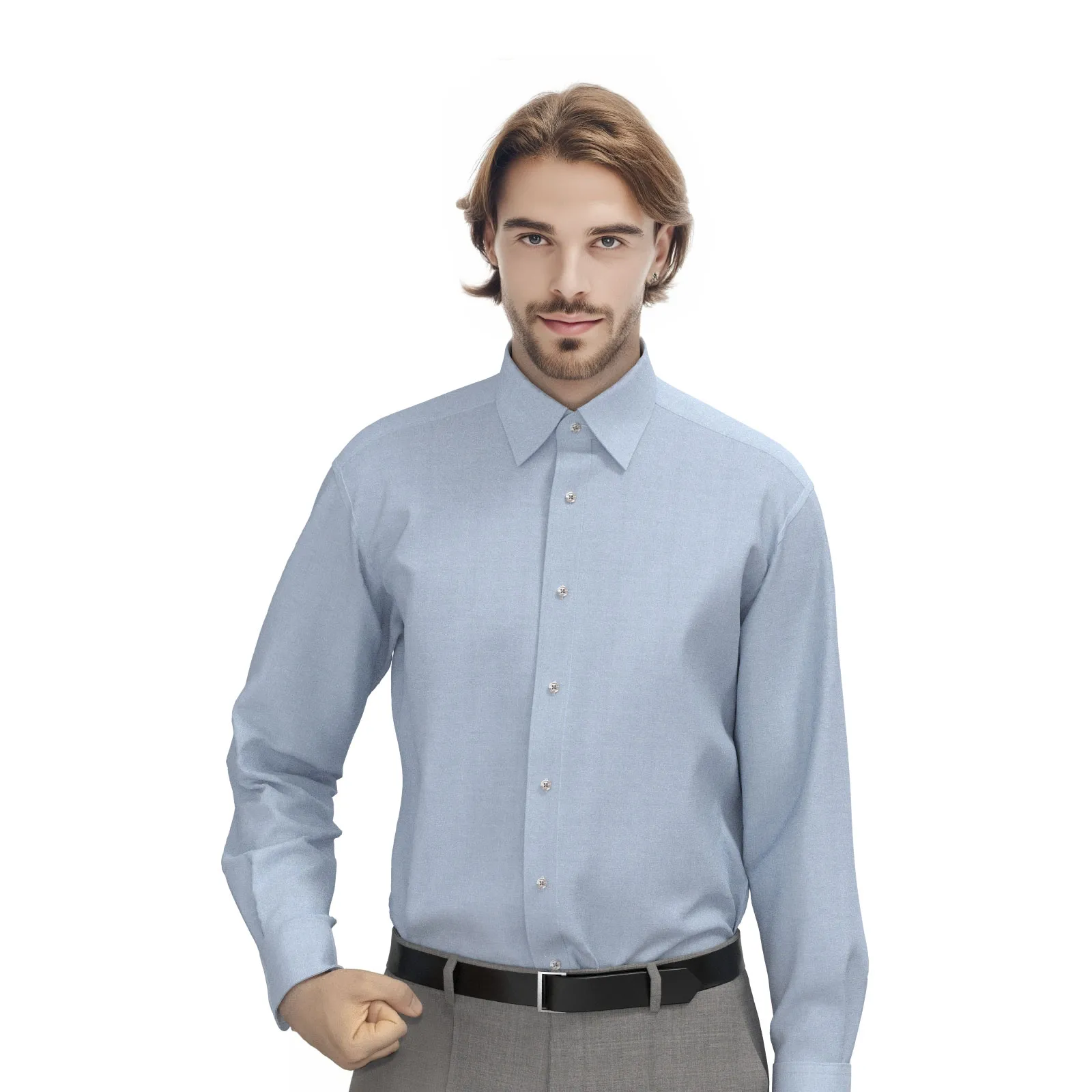WRINKLE FREE TC ブルー シャンブレー(Y100941)