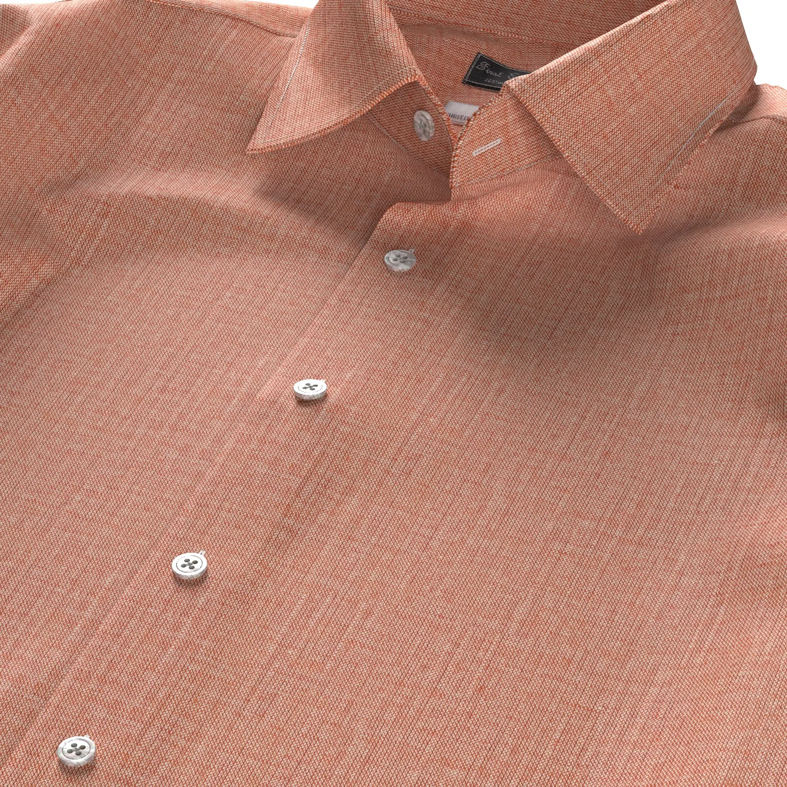詳細上質で知られるイタリアTESTAの薄手で柔らかな綿麻素材のネップ感のある白糸×オレンジのシャンブレー生地です。滑らかな肌触りときれいな発色が魅力の素材です。