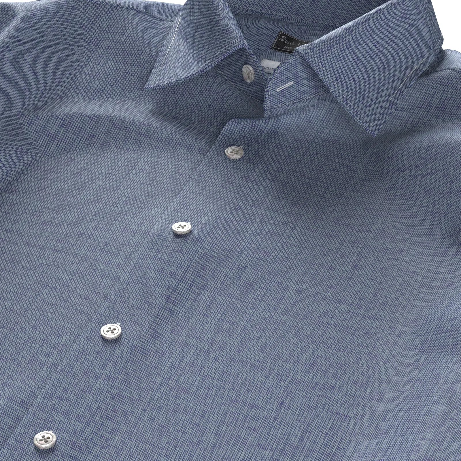 詳細上質で知られるイタリアTESTAの薄手で柔らかな綿麻素材のネップ感のある白糸×ネイビー・ダンガリーのシャンブレー生地です。滑らかな肌触りときれいな発色が魅力の素材です。