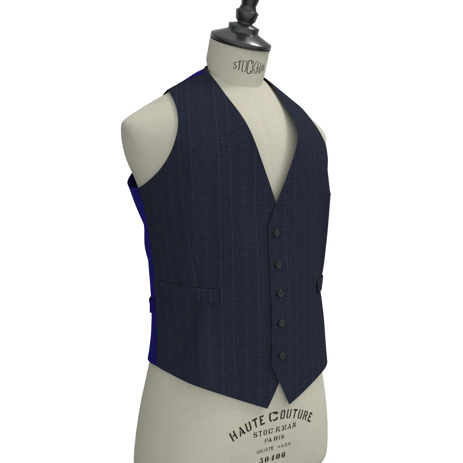 詳細風に舞うように軽くて薄い素材感のネイビー・ピンストライプ生地です。