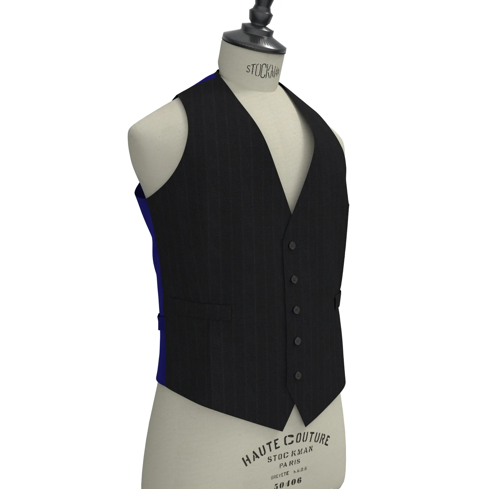 詳細ベーシックでストレッチ性のある黒に近い濃紺にストライプの生地です。