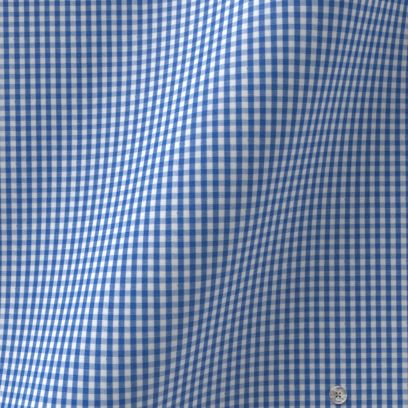 詳細ベーシックでメンテナンス性の高いTCのブルーのギンガムチェック生地です。
