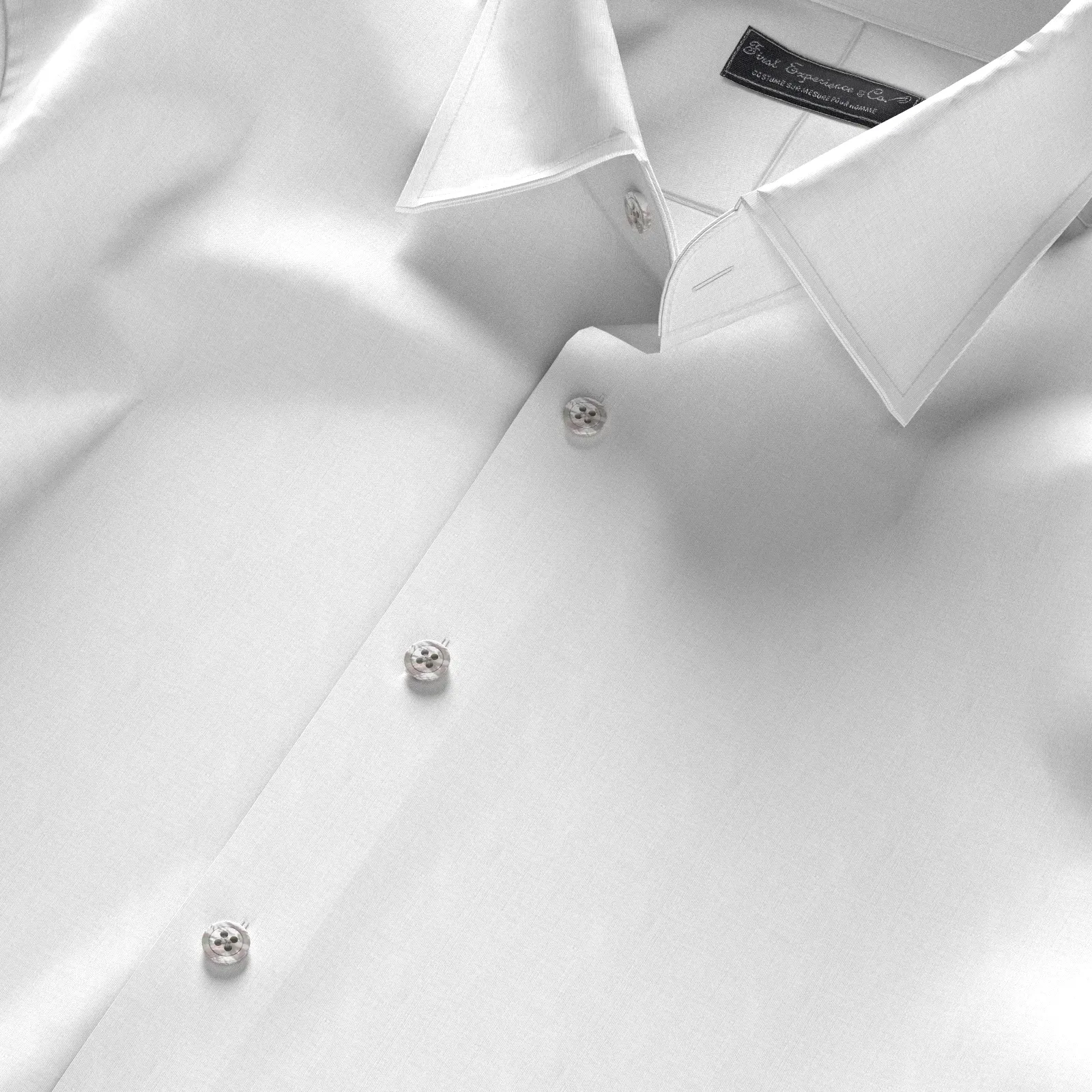 詳細ホワイトブロード素材。日本を代表するファブリックメーカー日清紡の綿100%イージーケア素材です。家庭洗濯+軽いアイロンがけですっきり・きっちりと着こなせる忙しいビジネスマンにぴったりの素材です。肌触りも綿100%の風合いを損なわない着心地がさすがです。