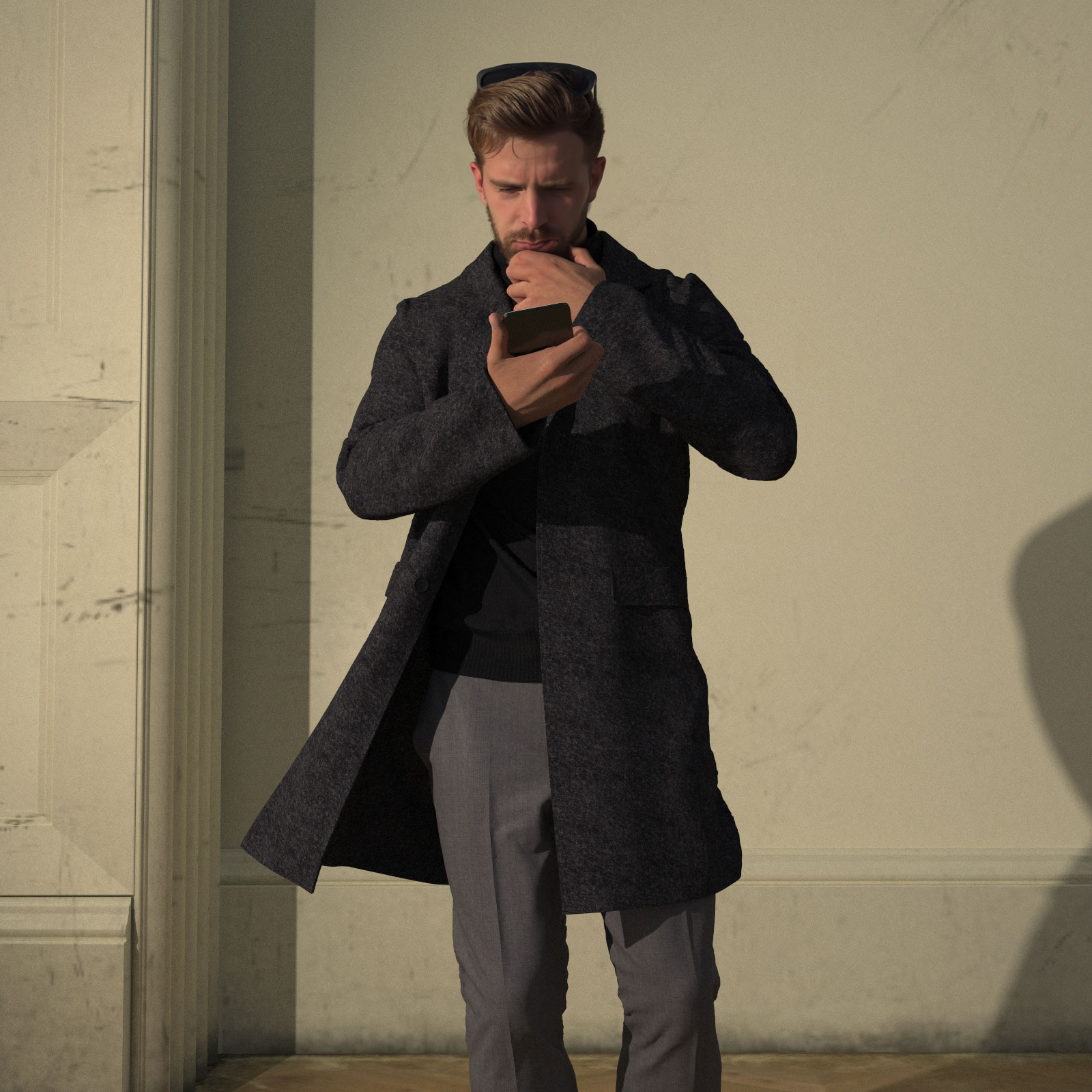 尾州織の紡毛1/14のウール/ナイロンフラノにナッピング調の起毛加工を施した肉厚感のあるチャコールグレー生地です。
