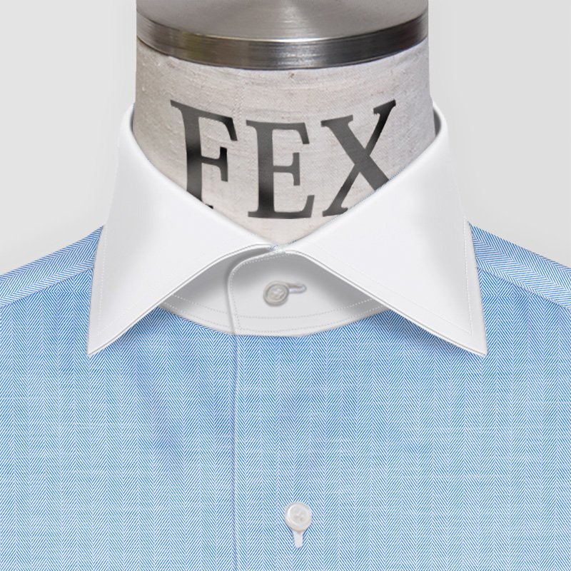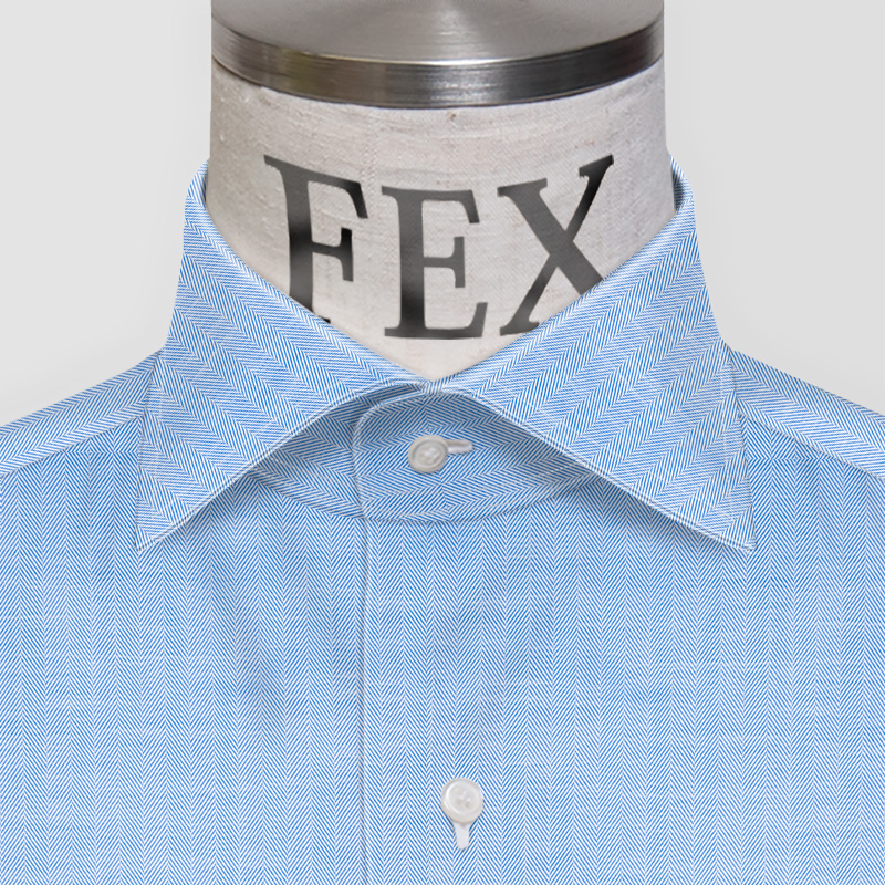 トーマス・メイソンのすべるように滑らかなGold Line140双糸の少し細めのブルー・ヘリンボーン織生地です。光沢感と陰影の美しさが特徴のヘリンボーンですが、この上質感は着ていれば必ず褒められると思るほどの仕上がりです。