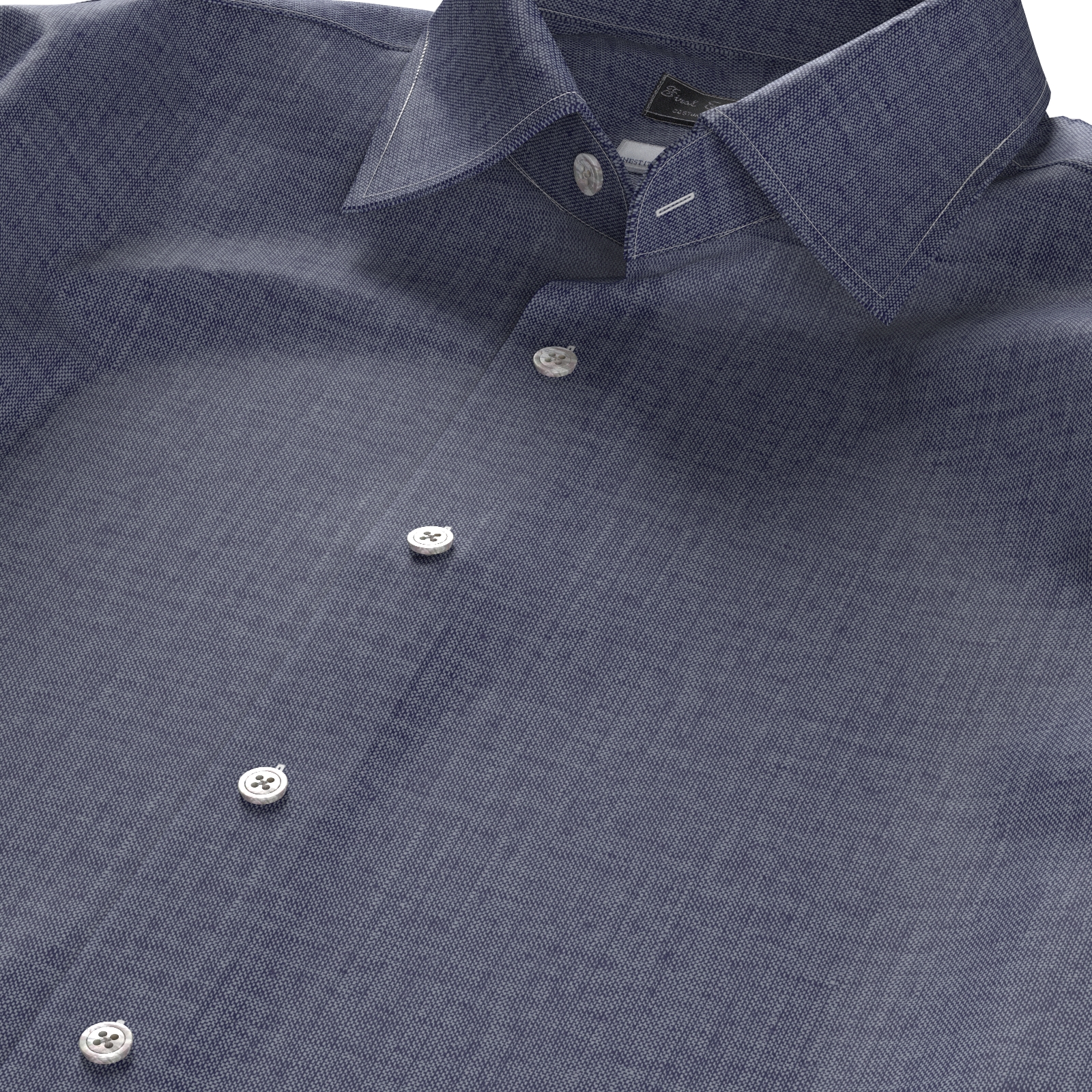 上質で知られるイタリアTESTAの薄手で柔らかな綿麻素材のネップ感のある白糸×インク ブルーのシャンブレー生地です。滑らかな肌触りときれいな発色が魅力の素材です。