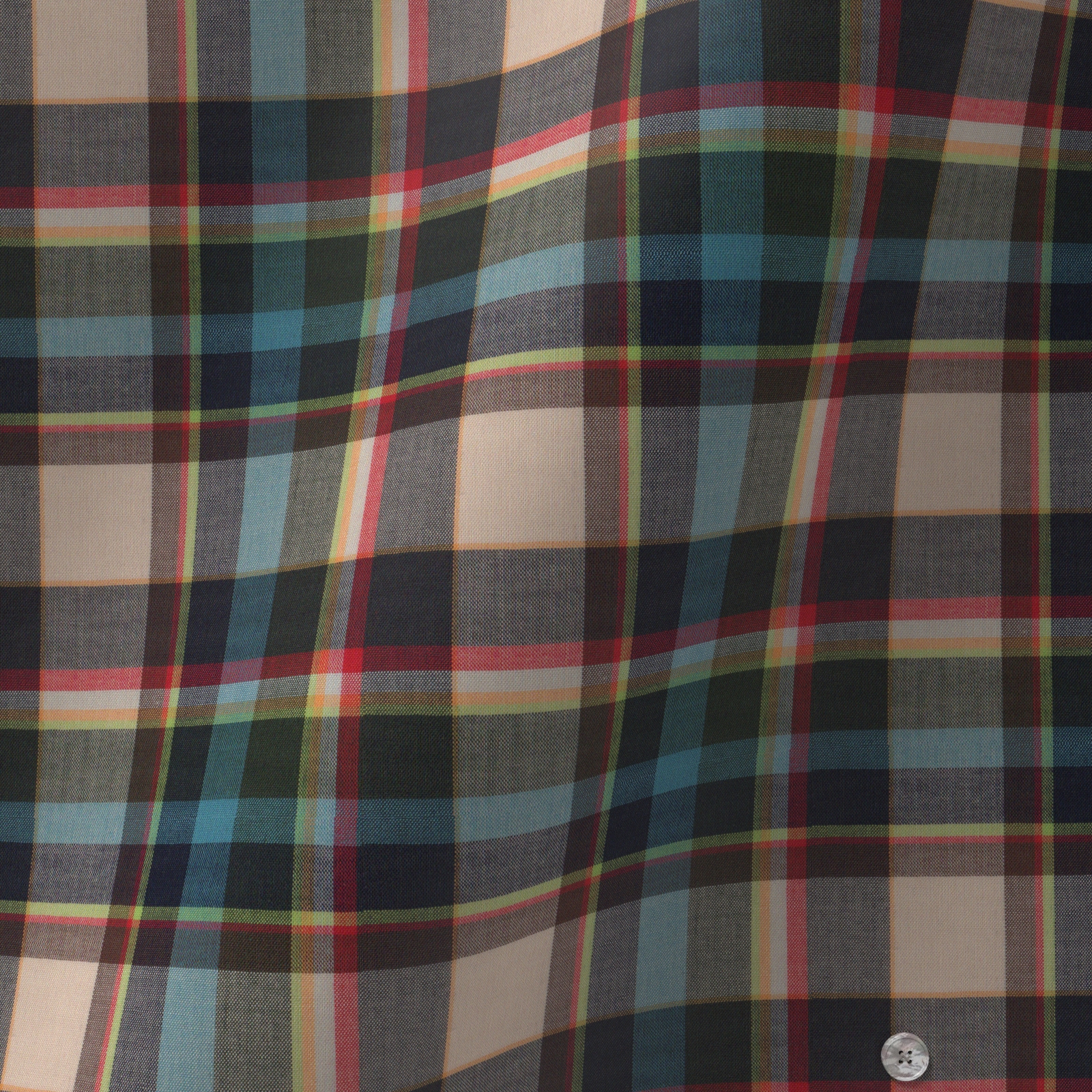上質でなめらかなブルにブラック、レッド,イエローなどのマドラス風生地です。