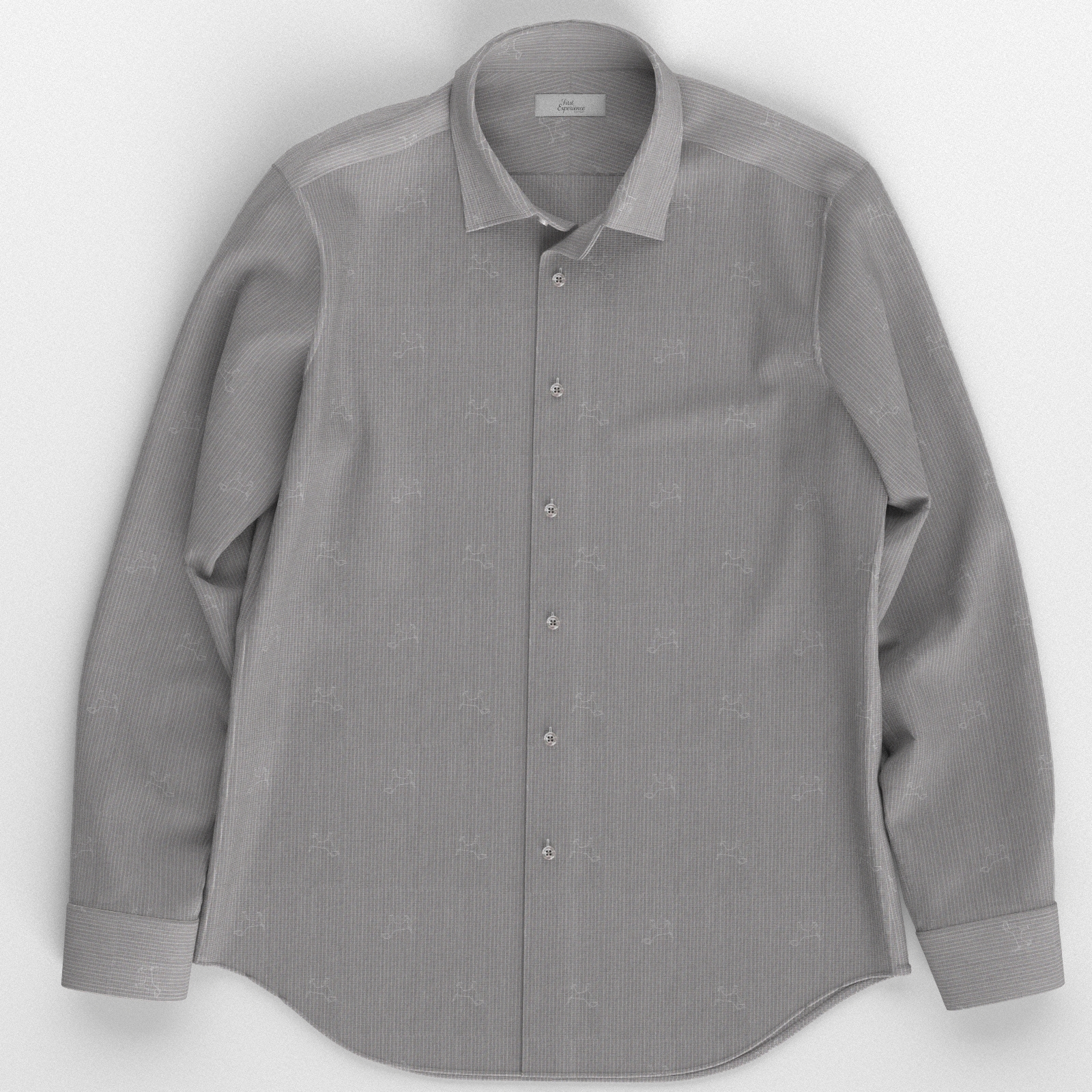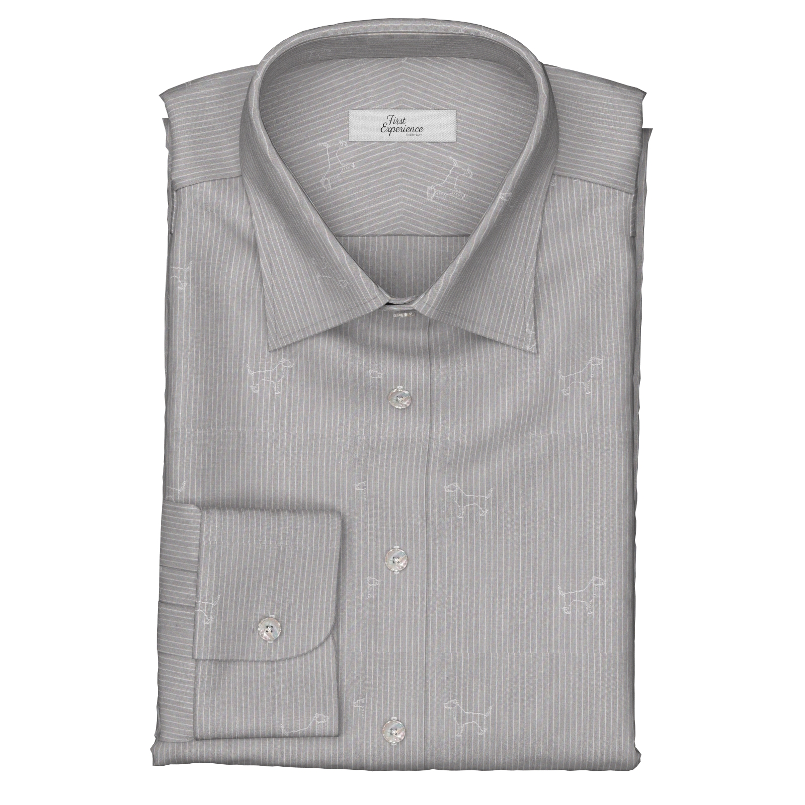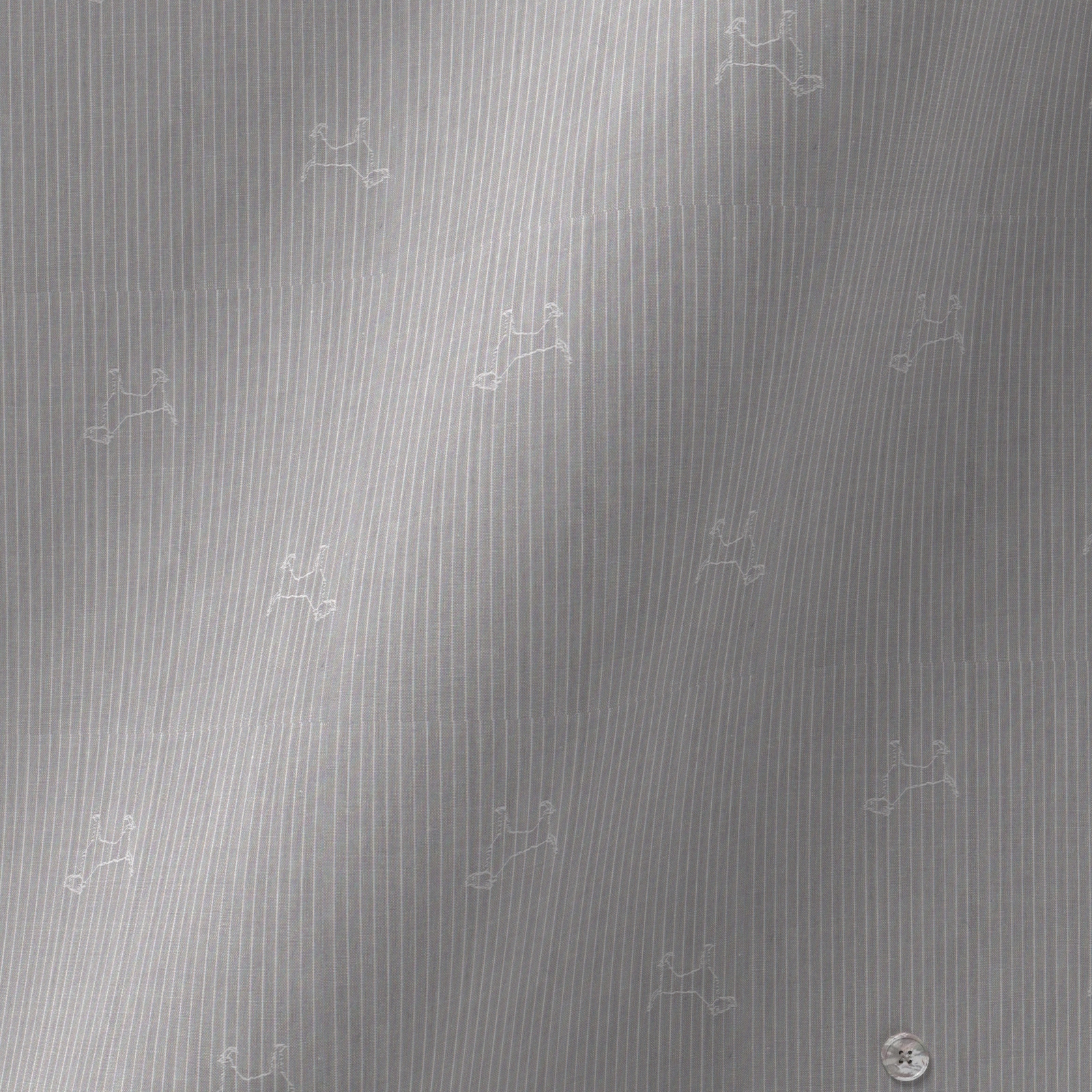 上質でなめらかなグレーに白抜きのホワイト・ピンストライプに犬の刺繍のような柄が入った生地です。