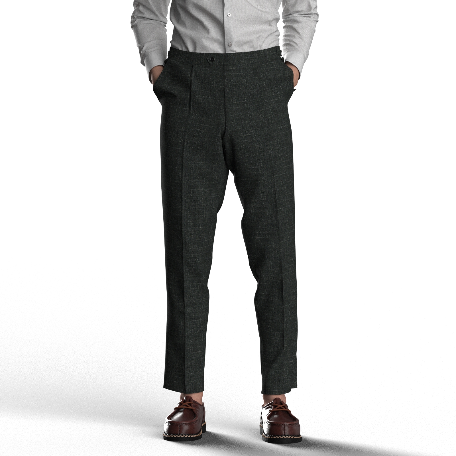 リネンのかすれが上品なリネン&ウールのクオリティです。涼しげなリネンの質感を引き出しながら、ベースにはウールを使用しているのでドレッシーな雰囲気を纏ったボディです。またウールベースにすることでシワにも強く、ストレッチ性も備えているので実用的にも非常に優れています。