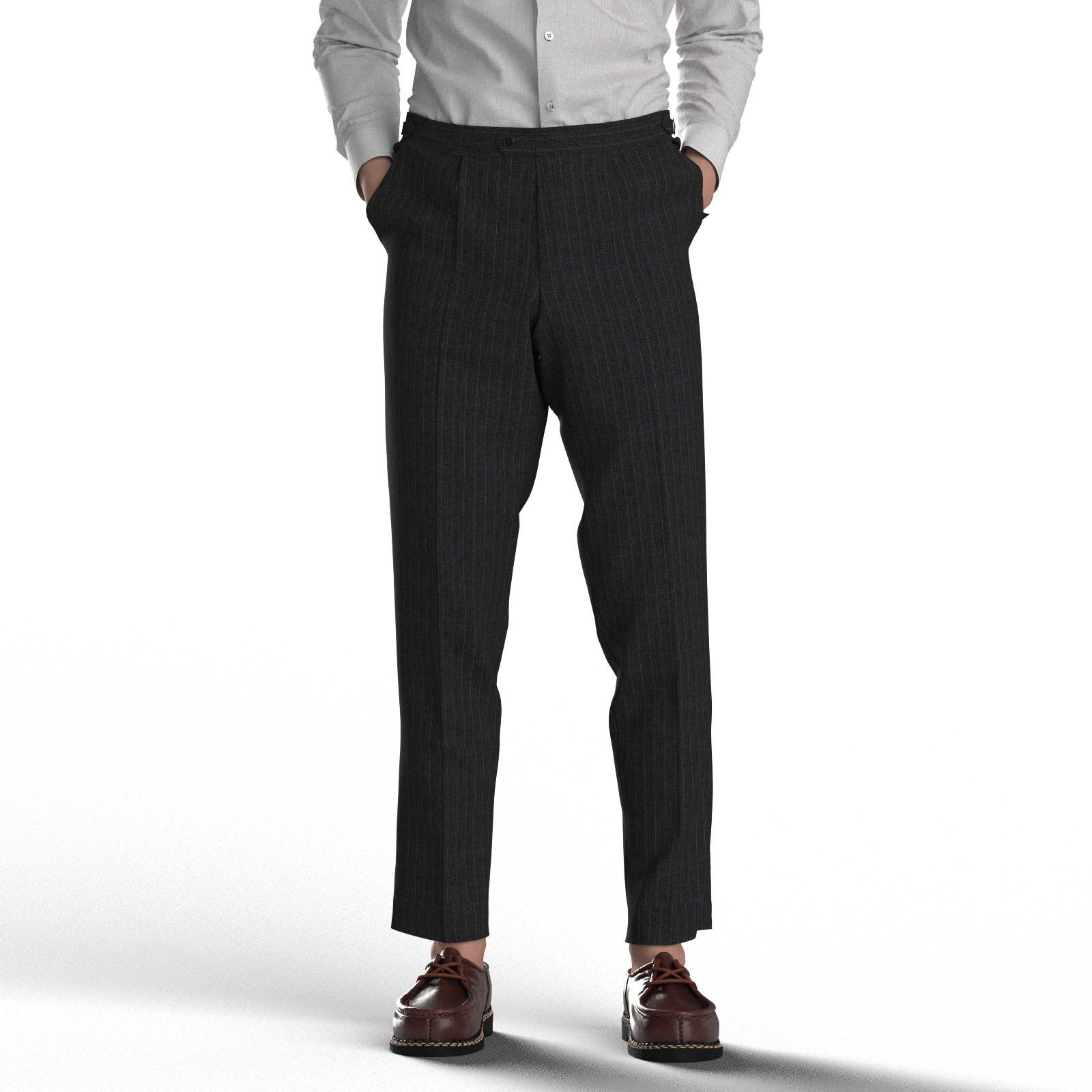 高級ブランドLoro Pianaのチャコールグレーのピンストライプ生地です。