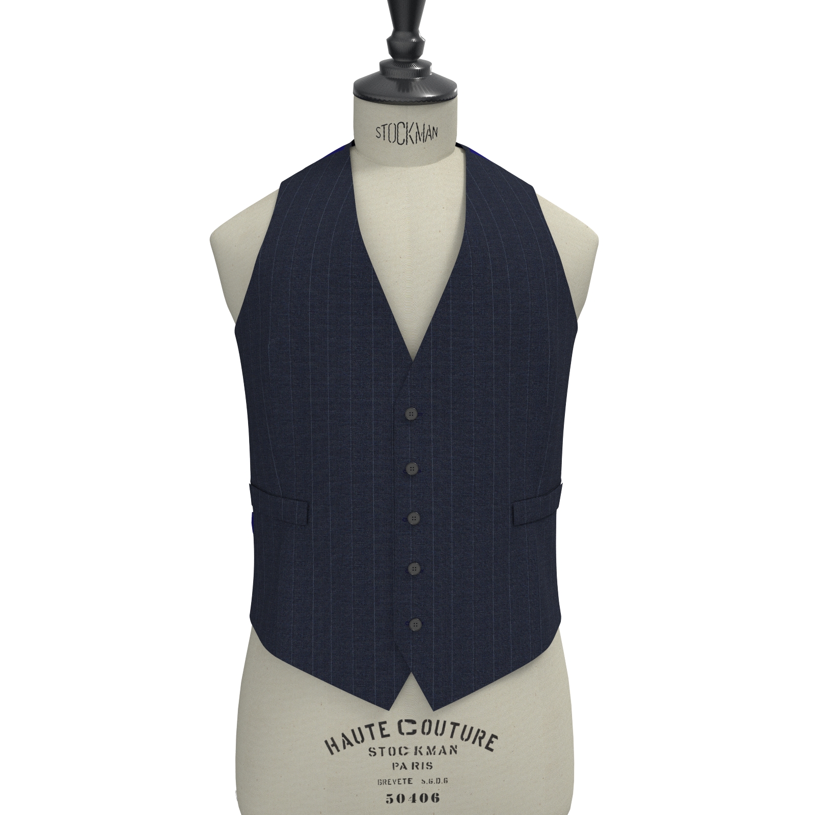 風に舞うように軽くて薄い素材感のネイビー・ピンストライプ生地です。