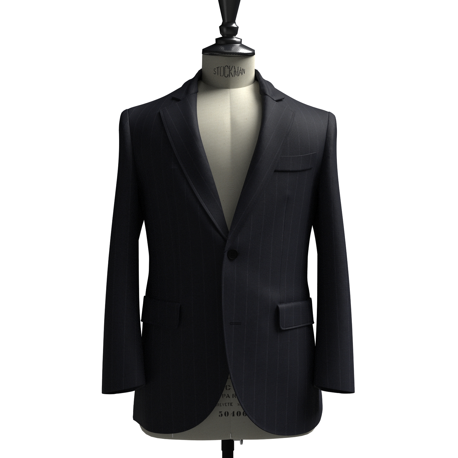 ベーシックでストレッチ性のあるネイビーにチョークストライプの生地です。
